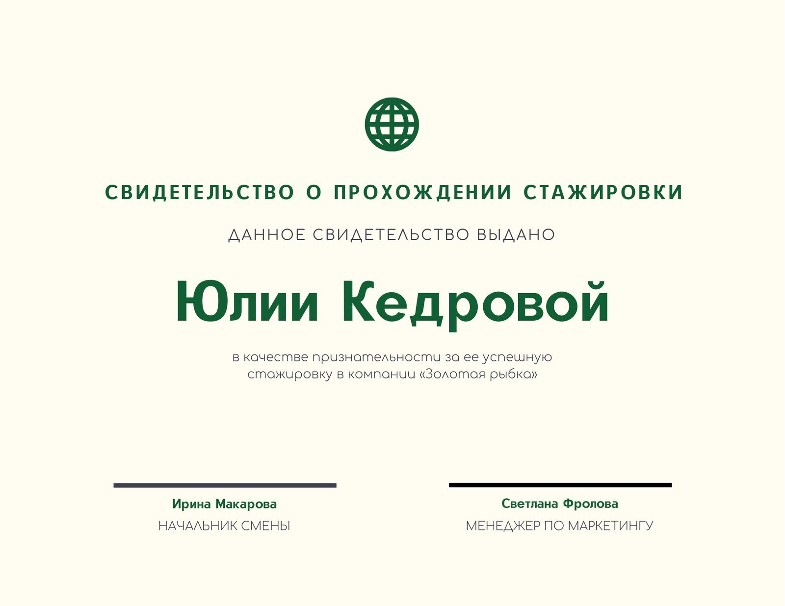 Успешное прохождение стажировки