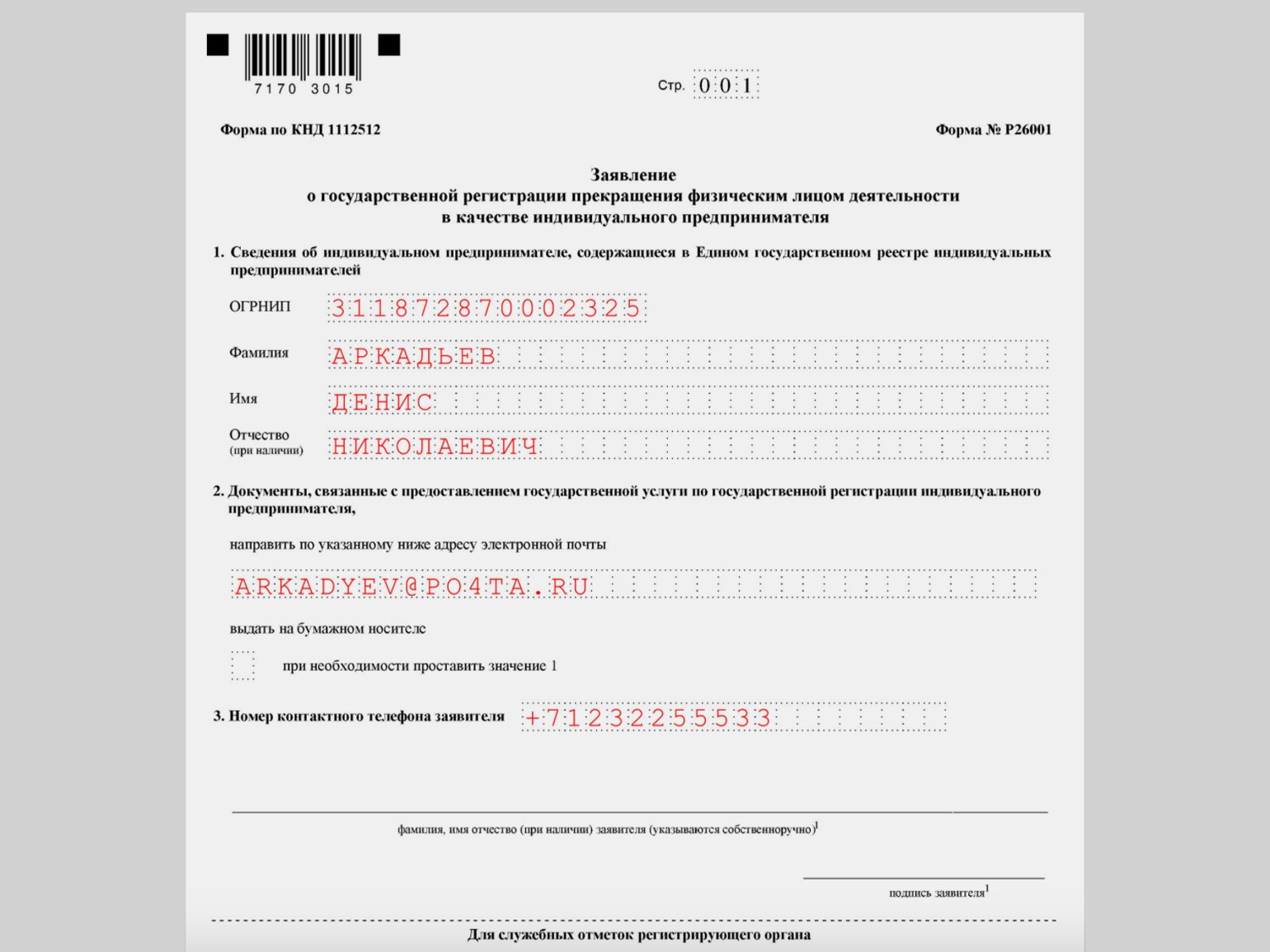 Оформление заявления о закрытии ИП