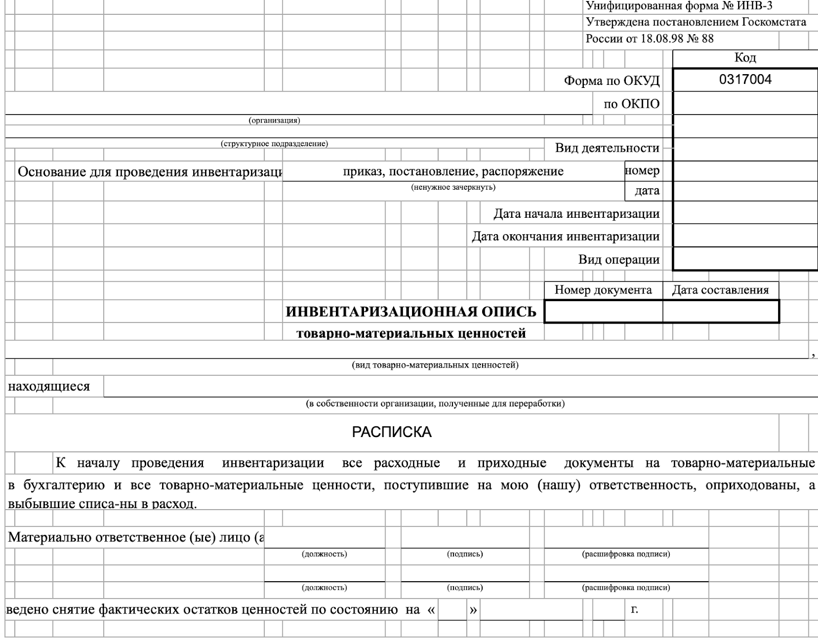 - Выявление и оформление недостач, излишков или ошибок учета.