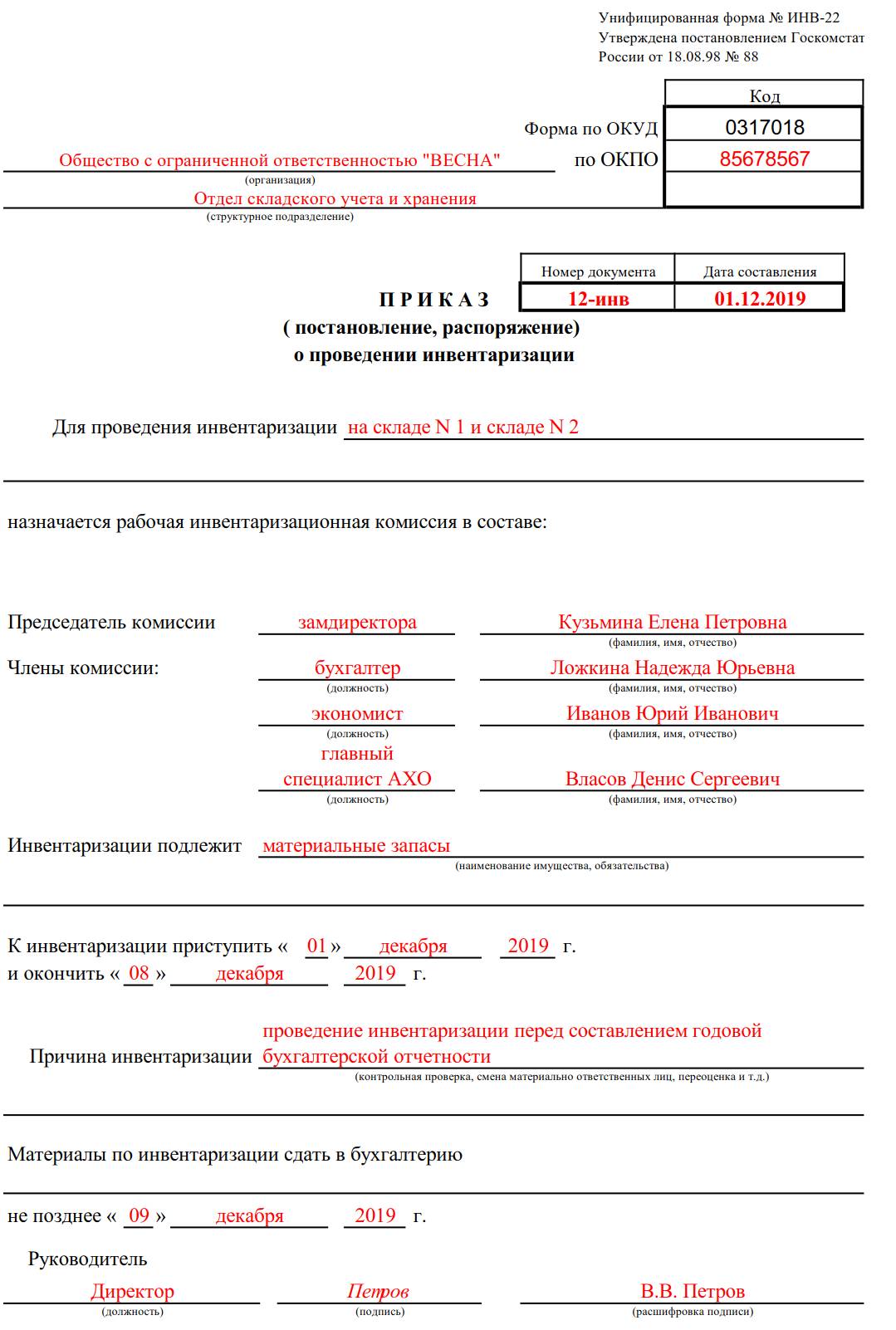 - Создание инвентаризационной комиссии и распределение ответственности